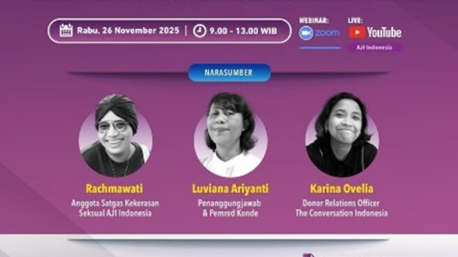 Topik: Mekanisme Keselamatan Jurnalis Perempuan dan Pentingnya Menyusun SOP Perlindungan serta Penanganan Kekerasan Seksual di Media.