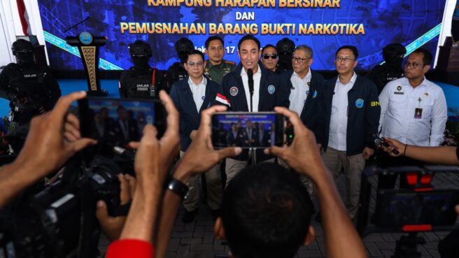 Jakarta – Badan Narkotika Nasional (BNN) memusnahkan barang bukti narkotika hasil pengungkapan kasus sepanjang periode Oktober–Desember di sejumlah wilayah Indonesia, meliputi Aceh, Sumatera Utara, Sumatera Selatan, Banten, DKI Jakarta, Kalimantan Barat, dan Nusa Tenggara Barat. Pemusnahan tersebut dilaksanakan pada Rabu (17/12), di dua lokasi, yakni Buffer Area IPC Cabang Tanjung Priok, Jakarta Utara, serta PT Jasa Medivest Plant, Dawuan, Karawang, Jawa Barat.