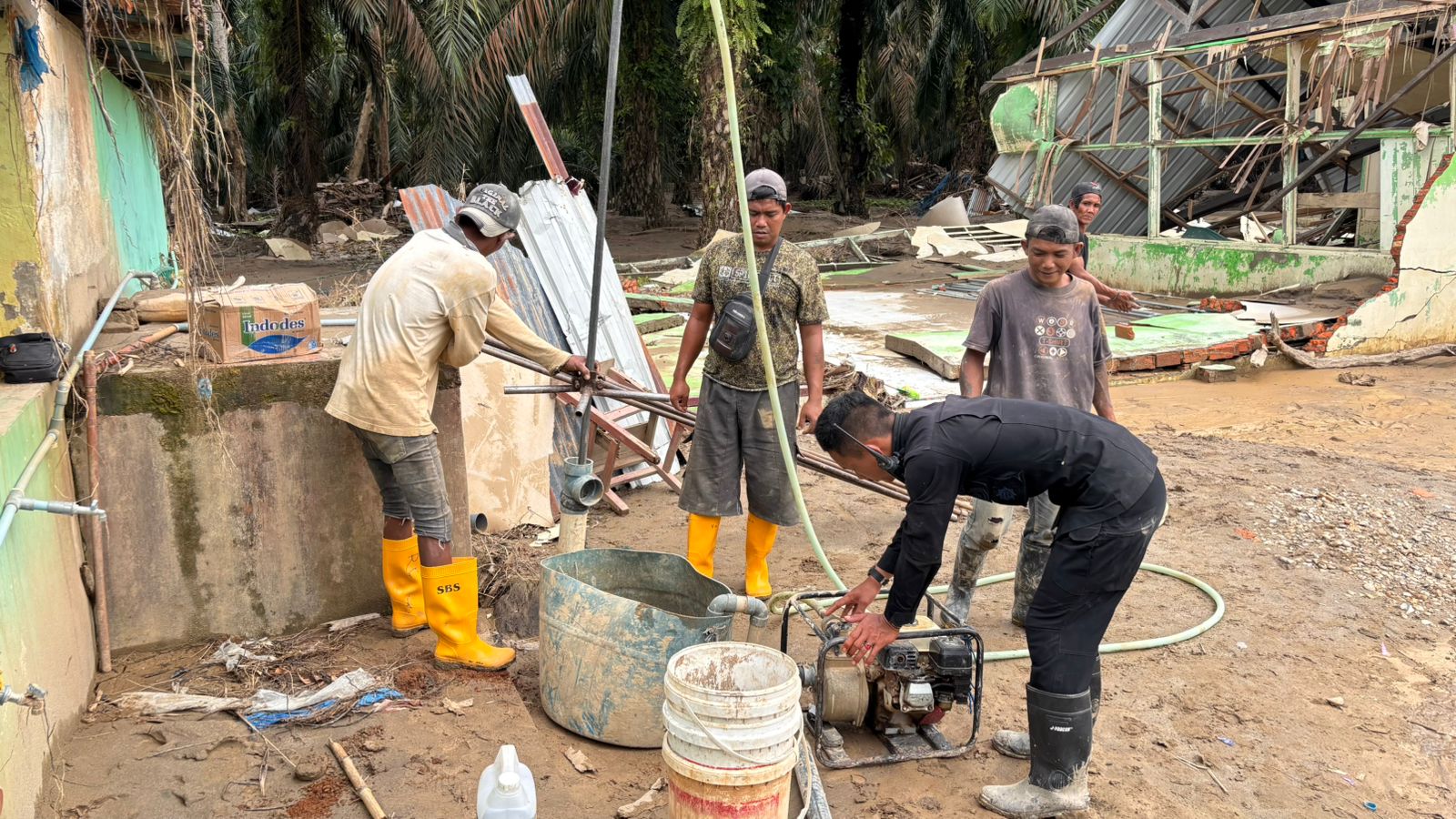 Aceh Tamiang – Personel Satuan Brigade Mobil (Satbrimob) Polda Aceh yang tergabung dalam Satgas Aman Nusa II melaksanakan kegiatan pembuatan dan penyaluran fasilitas MCK (Mandi, Cuci, Kakus) umum bagi masyarakat di wilayah Kabupaten Aceh Tamiang.